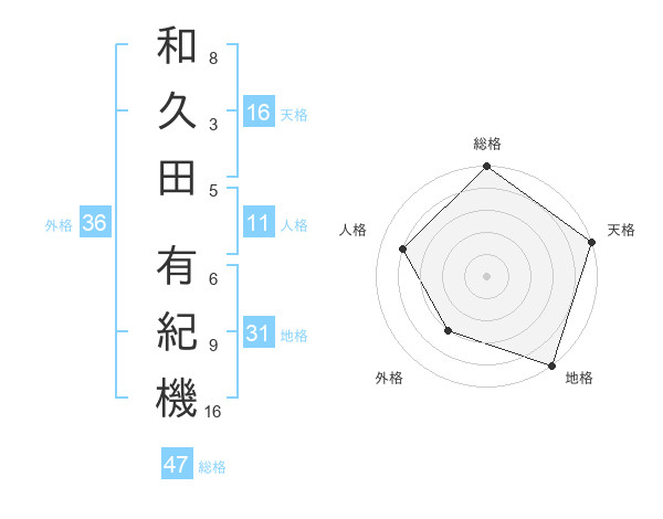 和久田 有紀機さんの総格は47画の5点