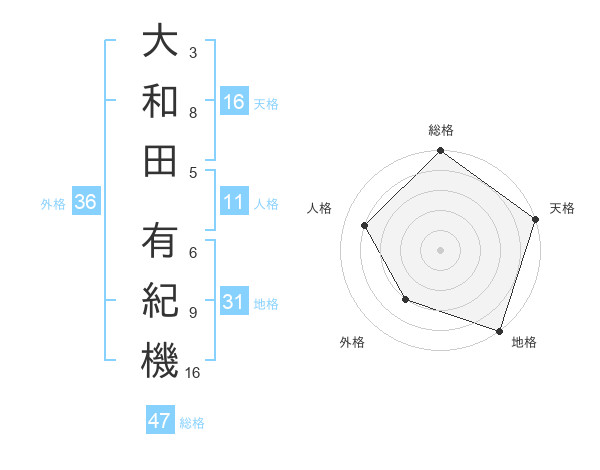 大和田 有紀機さんを姓名の画数から五運を鑑定