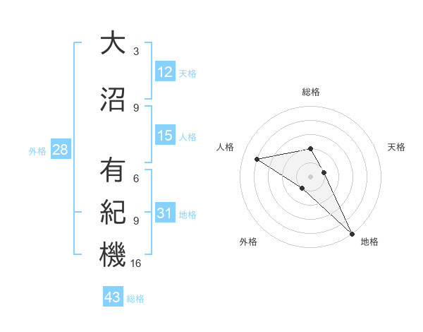 大沼 有紀機さんを姓名の画数から五運を鑑定