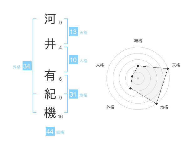 河井 有紀機さんを姓名の画数から五運を鑑定