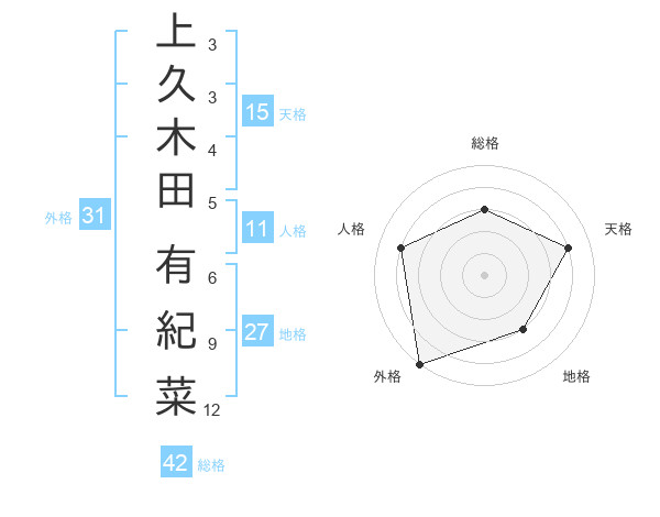 上久木田 有紀菜さんを姓名の画数から五運を鑑定