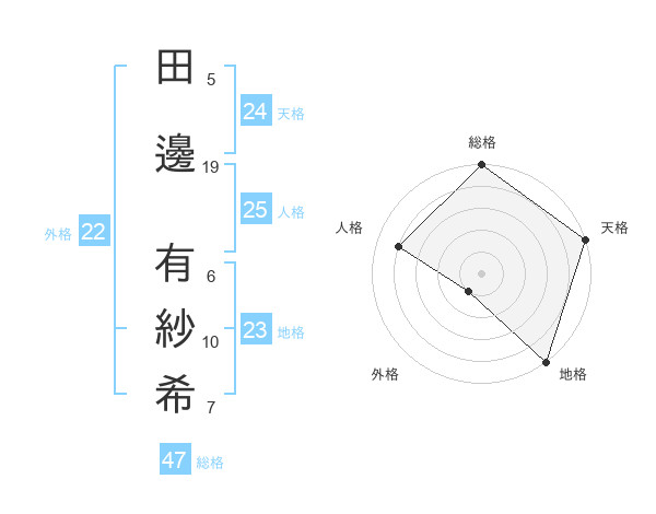 田邊 有紗希さんの天格は24画の5点