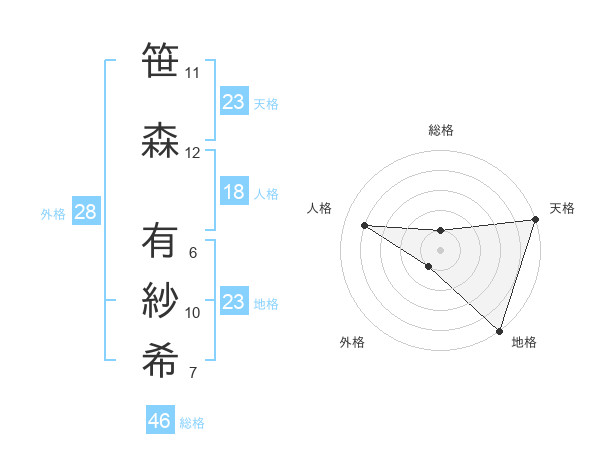 笹森 有紗希さんの天格は23画の5点!
