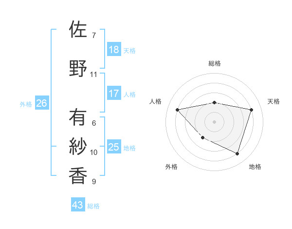 佐野 有紗香さんの総格は43画の2点!