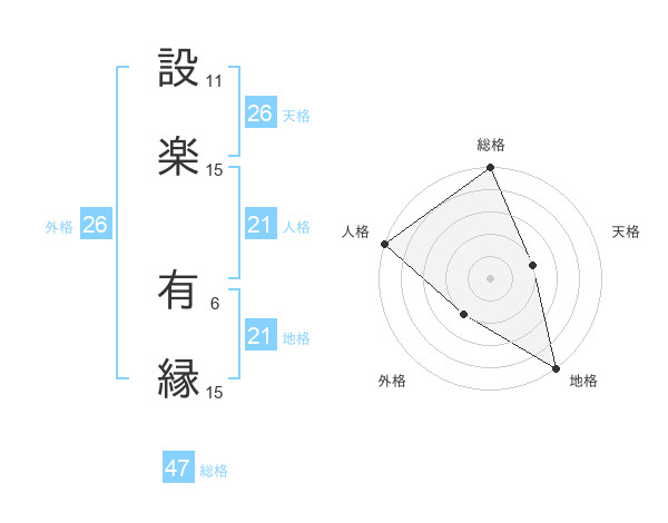 設楽 有縁さんの総格は47画の5点!