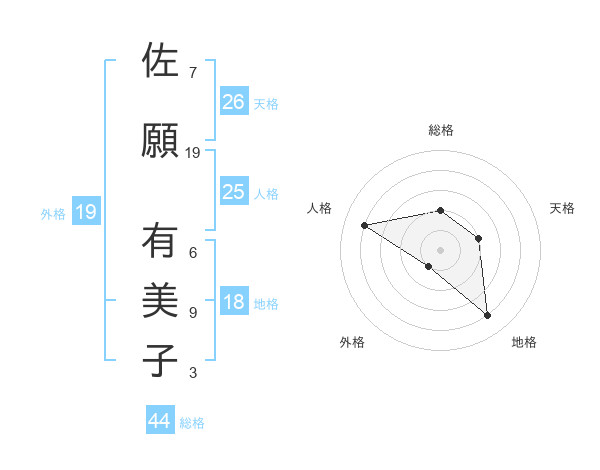 佐願 有美子さんを姓名の画数から五運を鑑定