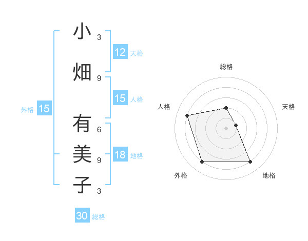 小畑 有美子さんを姓名の画数から五運を鑑定