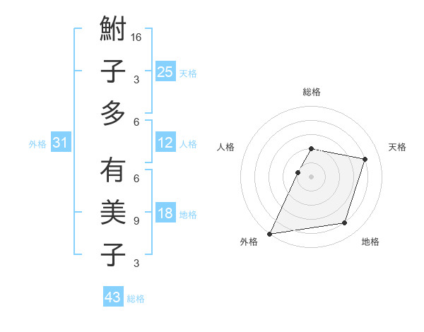 鮒子多 有美子さんを姓名の画数から五運を鑑定