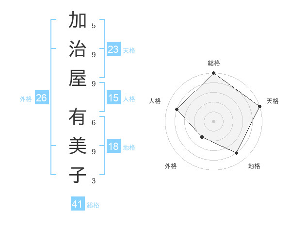 加治屋 有美子さんを姓名の画数から五運を鑑定