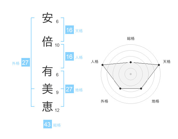 安倍 有美恵さんを姓名の画数から五運を鑑定