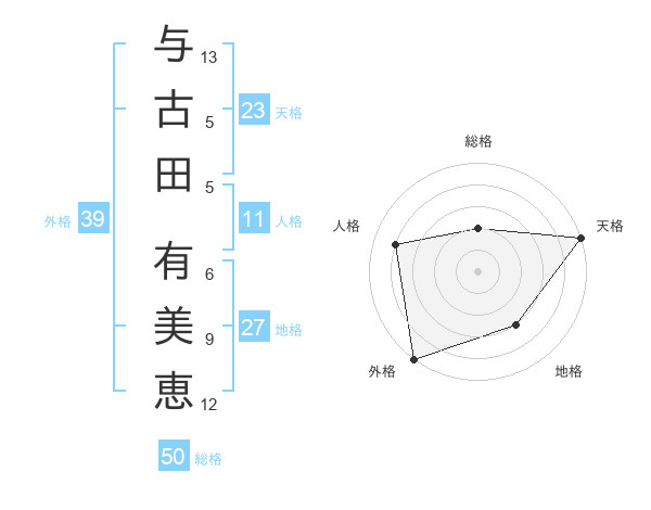 与古田 有美恵さんの外格は39画の5点!