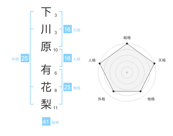 下川原 有花梨さんを姓名の画数から五運を鑑定