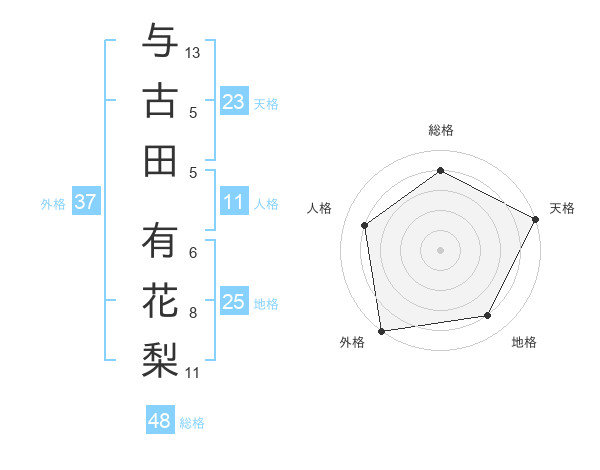 与古田 有花梨さんを姓名の画数から五運を鑑定