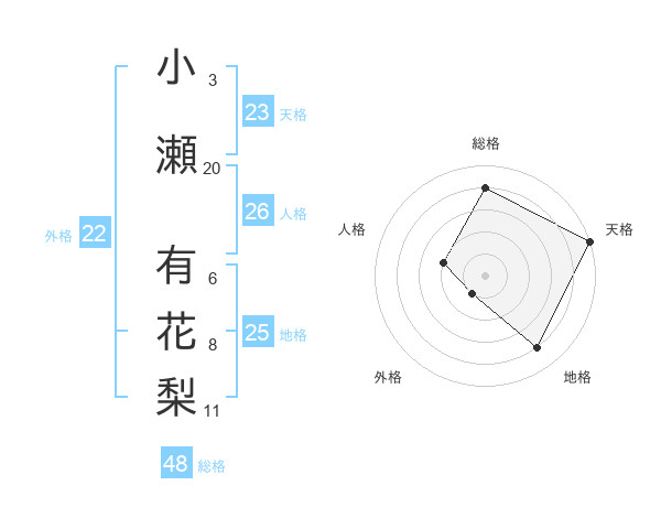小瀬 有花梨さんの総格は48画の4点!