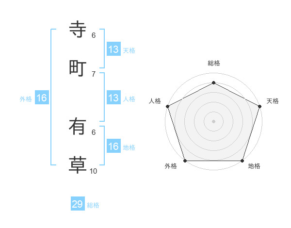 寺町 有草さんの天格は13画の5点!