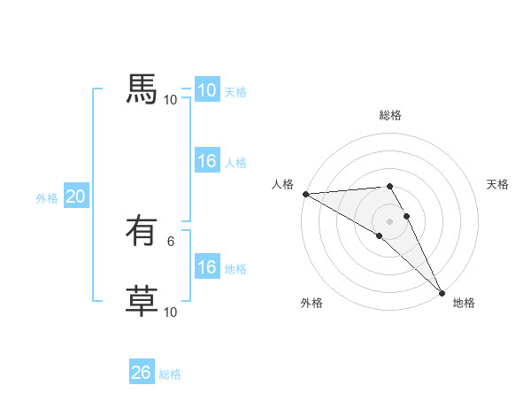 馬 有草さんの総格は26画の2点!