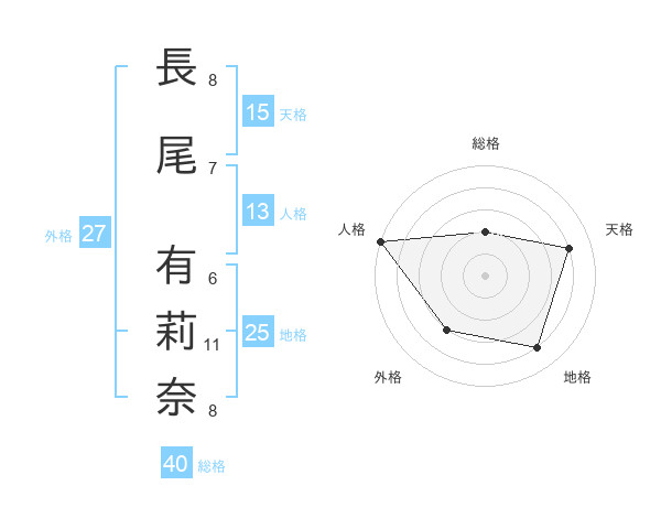 長尾 有莉奈さんを姓名の画数から五運を鑑定
