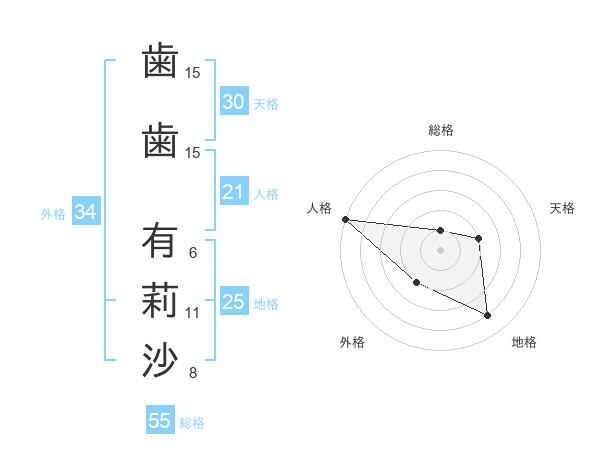 歯歯 有莉沙さんの総格は55画の1点!
