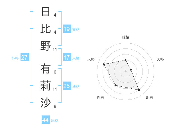 日比野 有莉沙さんを姓名の画数から五運を鑑定