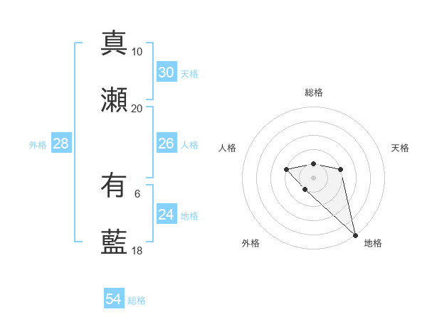 真瀬 有藍さんを姓名の画数から五運を鑑定
