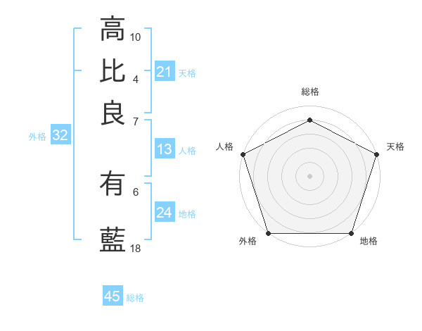 高比良 有藍さんの天格は21画の5点!