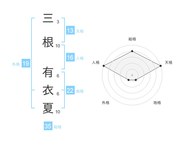 三根 有衣夏さんを姓名の画数から五運を鑑定