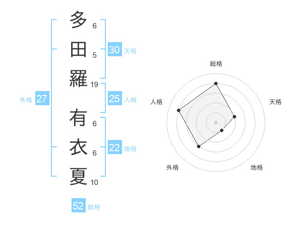 多田羅 有衣夏さんを姓名の画数から五運を鑑定