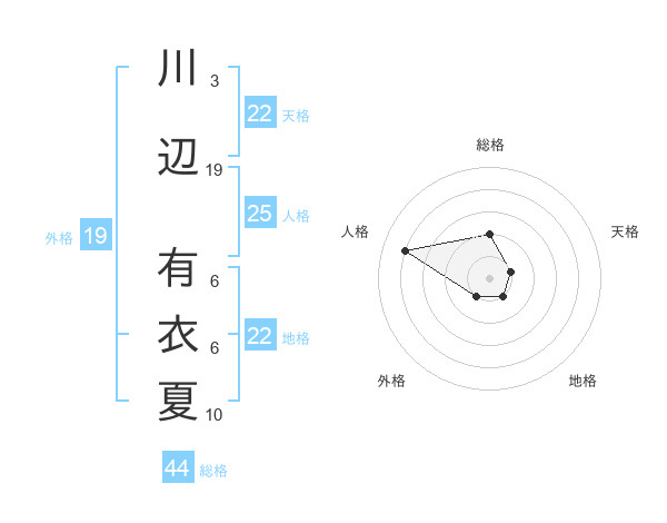 川辺 有衣夏さんの天格は22画の1点!
