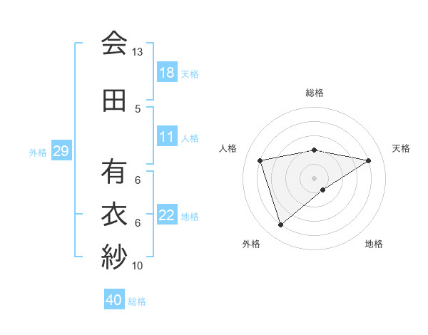 会田 有衣紗さんを姓名の画数から五運を鑑定