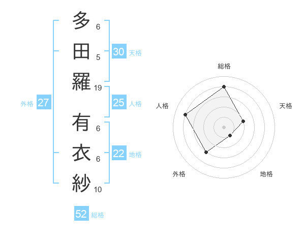 多田羅 有衣紗さんを姓名の画数から五運を鑑定