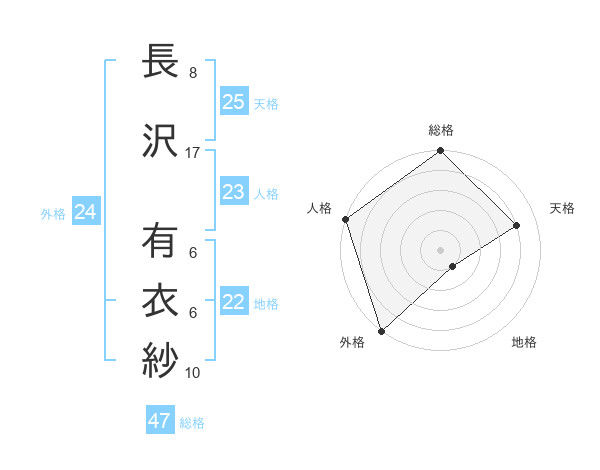 長沢 有衣紗さんを姓名の画数から五運を鑑定