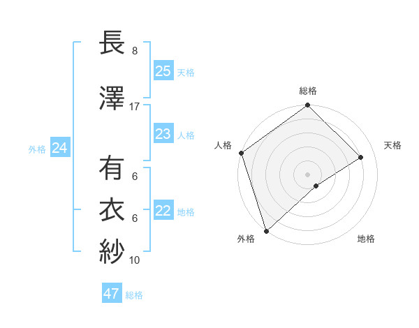 長澤 有衣紗さんを姓名の画数から五運を鑑定