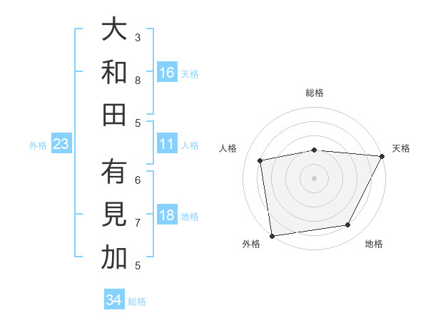 大和田 有見加さんを姓名の画数から五運を鑑定