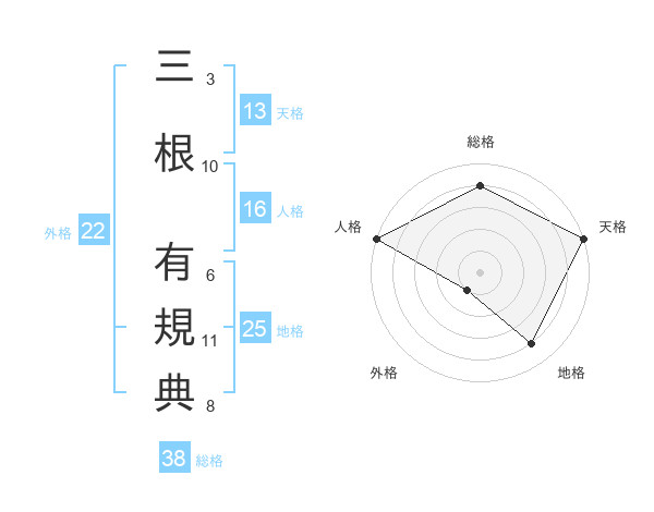三根 有規典さんの総格は38画の4点!