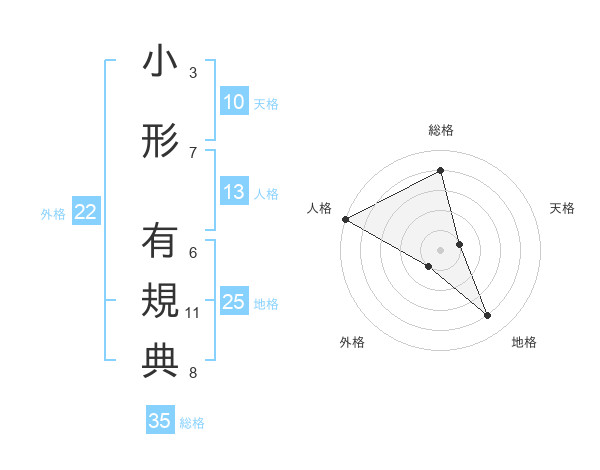 小形 有規典さんの総格は35画の4点!