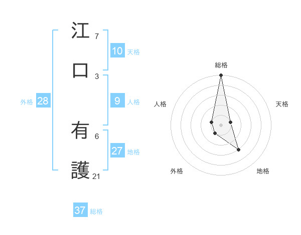 江口 有護さんの総格は37画の5点!