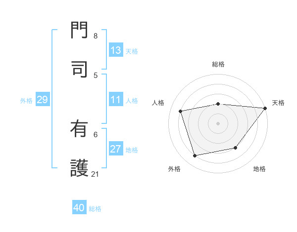 門司 有護さんの総格は40画の2点!