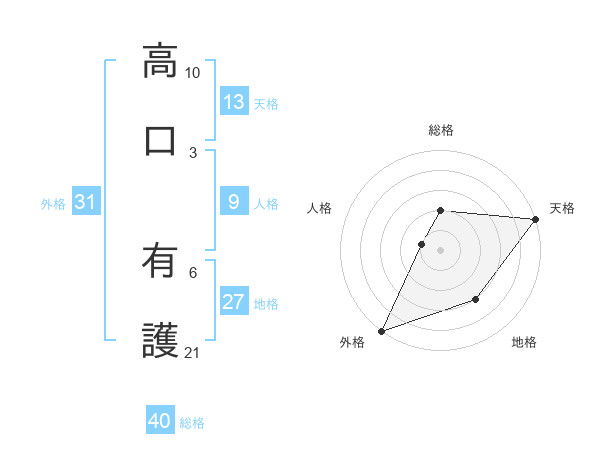 高口 有護さんの総格は40画の2点!