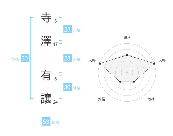 寺澤 有讓さんの総格は53画の3点!