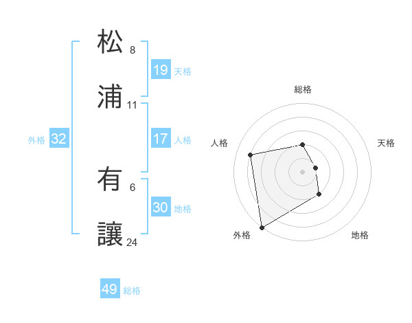松浦 有讓さんを姓名の画数から五運を鑑定