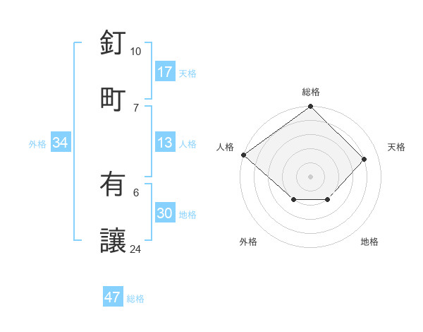 釘町 有讓さんを姓名の画数から五運を鑑定