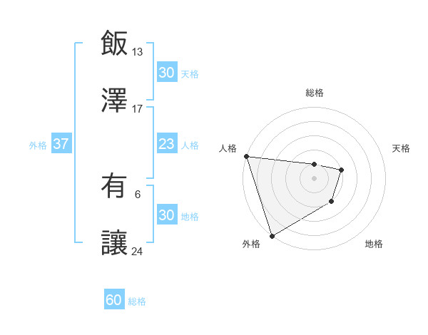 飯澤 有讓さんの外格は37画の5点!