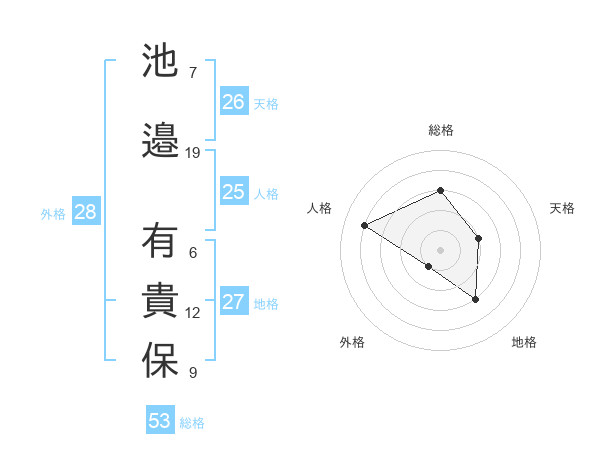 池邉 有貴保さんの総格は53画の3点