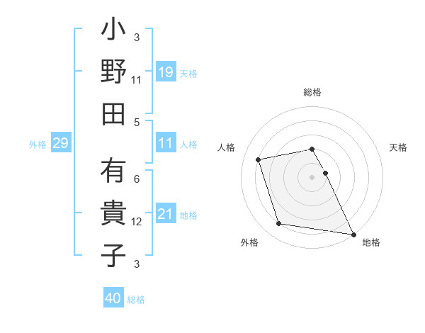 小野田 有貴子さんを姓名の画数から五運を鑑定