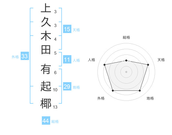上久木田 有起椰さんの総格は44画の2点!