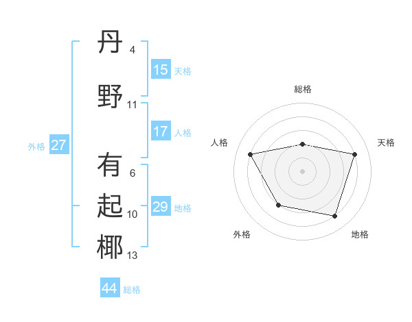 丹野 有起椰さんを姓名の画数から五運を鑑定