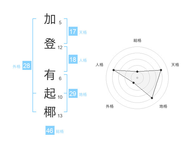 加登 有起椰さんを姓名の画数から五運を鑑定
