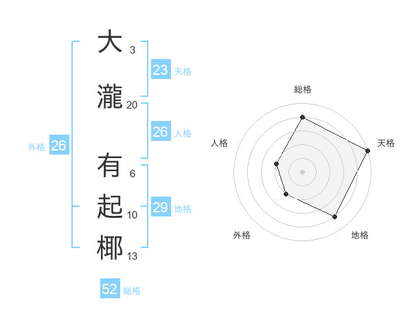 大瀧 有起椰さんを姓名の画数から五運を鑑定