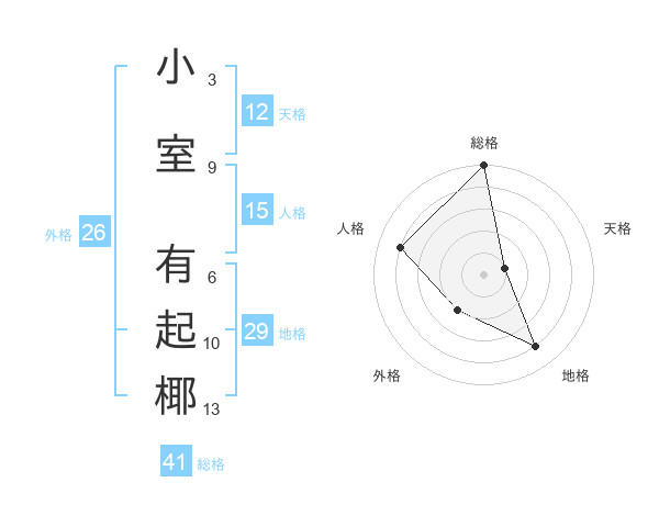 小室 有起椰さんを姓名の画数から五運を鑑定