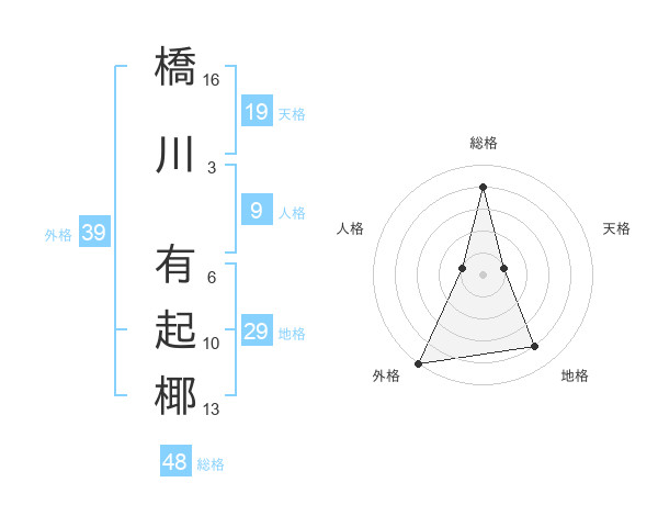 橋川 有起椰さんの外格は39画の5点!